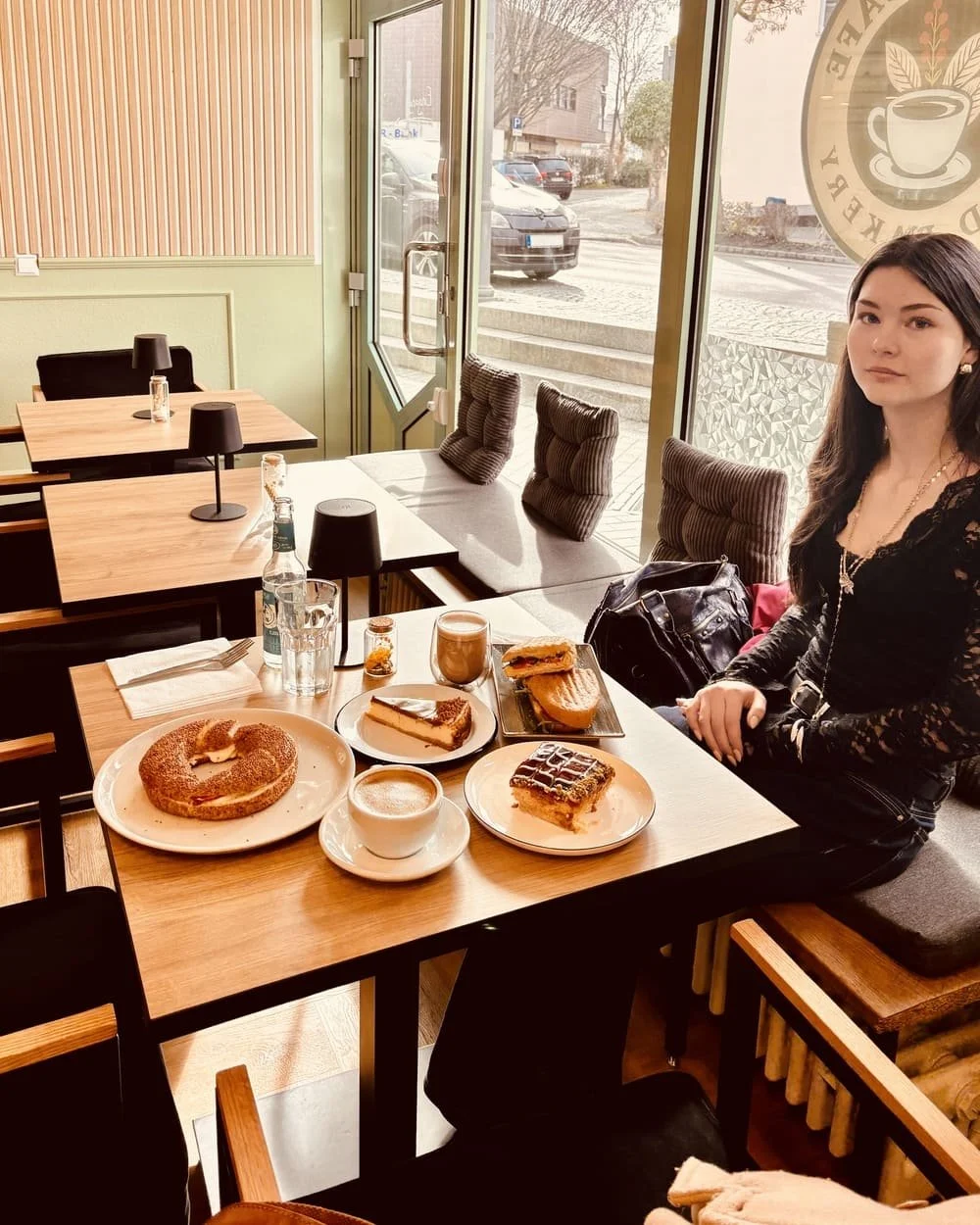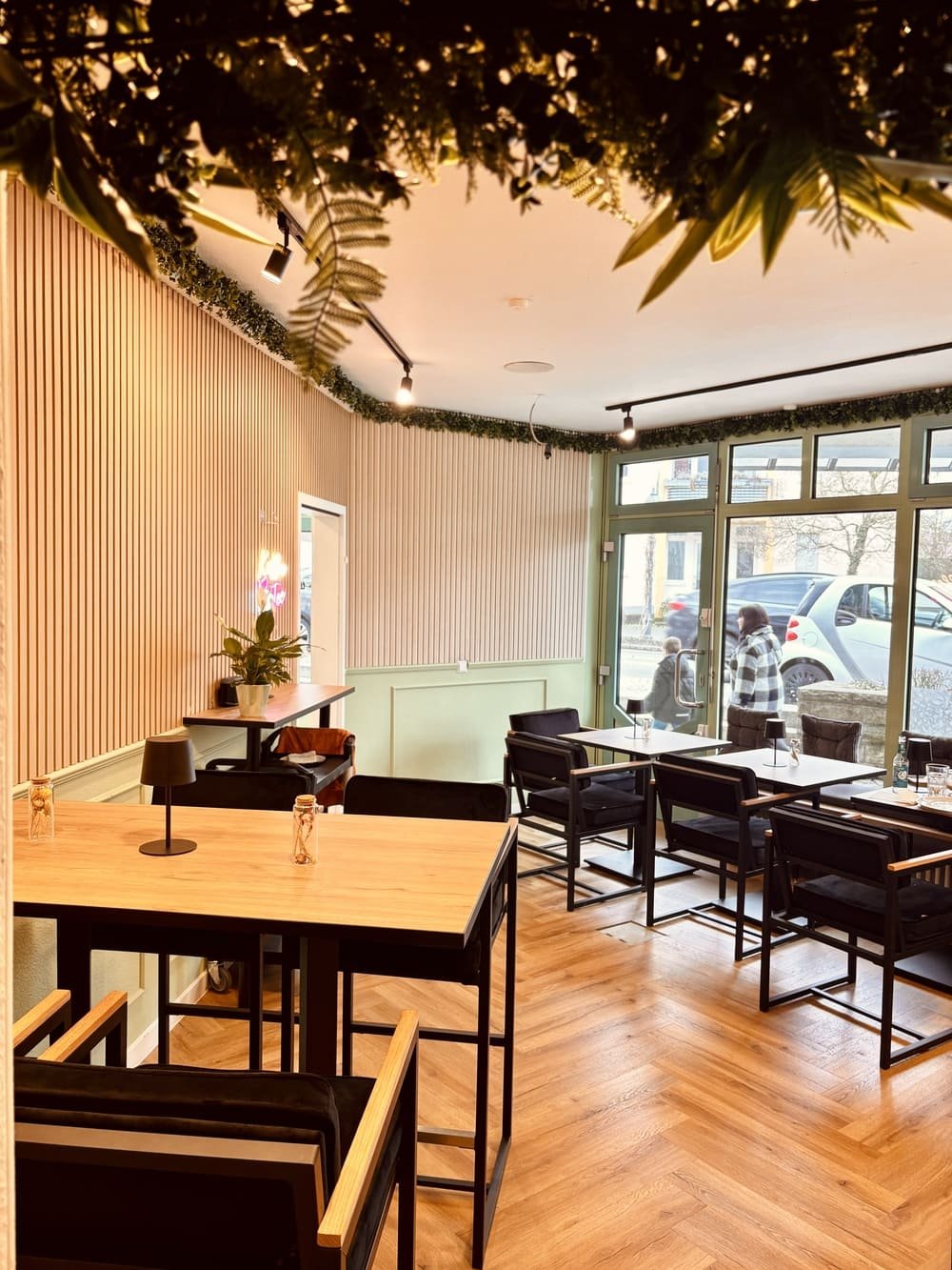 Das sieht man dem Café auch an: In Mintgrün gestrichen und an den Wänden mit Holzpanelen gestaltet ist es super modern und gemütlich eingerichtet. Die hochwertigen schwarzen Stühle laden zum längeren Verweilen ein – genau wie Yusa es wollte.