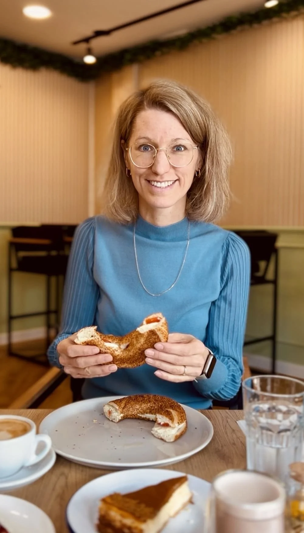 Ein neues Café? Müssen wir testen! Also ab nach Pleidelsheim. In Bonny’s Café erwartet dich eine kleine, feine Auswahl an Speisen und Getränken. Wir bestellten Simit, einen Sesamring, belegt mit Tomate, Mozzarella und Pesto und sehr guten Cappuchino mit Hafermilch dazu, sowie ein belegtes Brötchen mit Heißer Schokolade. Ebenfalls möglich: einen herzhaften Börek zum Frühstück mit heißem Çay-Tee. Frühstück gibts bis sage und schreibe 14 Uhr – perfekt für alle Langschläfer:innen.
